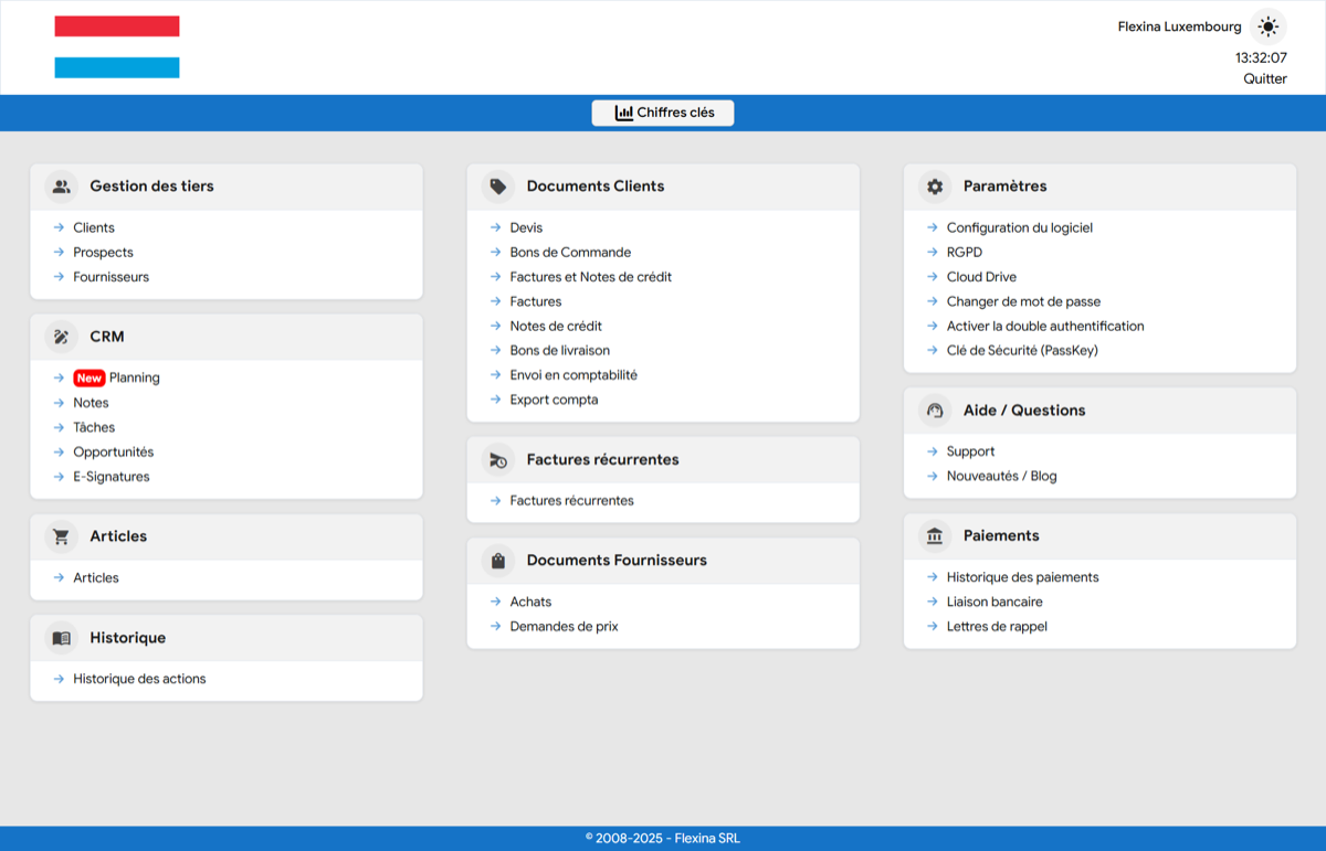 Idéal pour les indépendants et PME, notre logiciel optimise votre gestion quotidienne avec une interface moderne et ergonomique. Flexina est conçu pour répondre aux exigences de la facturation électronique Peppol.